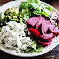 Fresh sliced beets, avocado, and goat cheese seasoned with chives
