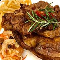 Chargrilled lamb shoulder steaks with seasoned spices, served with mashed potatoes and a side of your choice