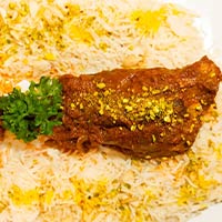 Tender lamb shanks cooked in aromatic spices and served with saffron rice