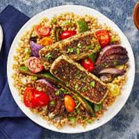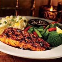 Seasoned salmon, chargrilled. Served on a fig chutney base served with grilled vegetables and a side of your choice.
